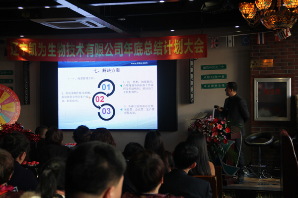 2018年1月8日,遼寧凱為生物技術(shù)有限公司2017年年度總結(jié)、表彰及2018年年度計(jì)劃大會(huì)在錦州西部音樂烤場一樓宴會(huì)大廳隆重召開。 公司全體員工參加了此次會(huì)議。