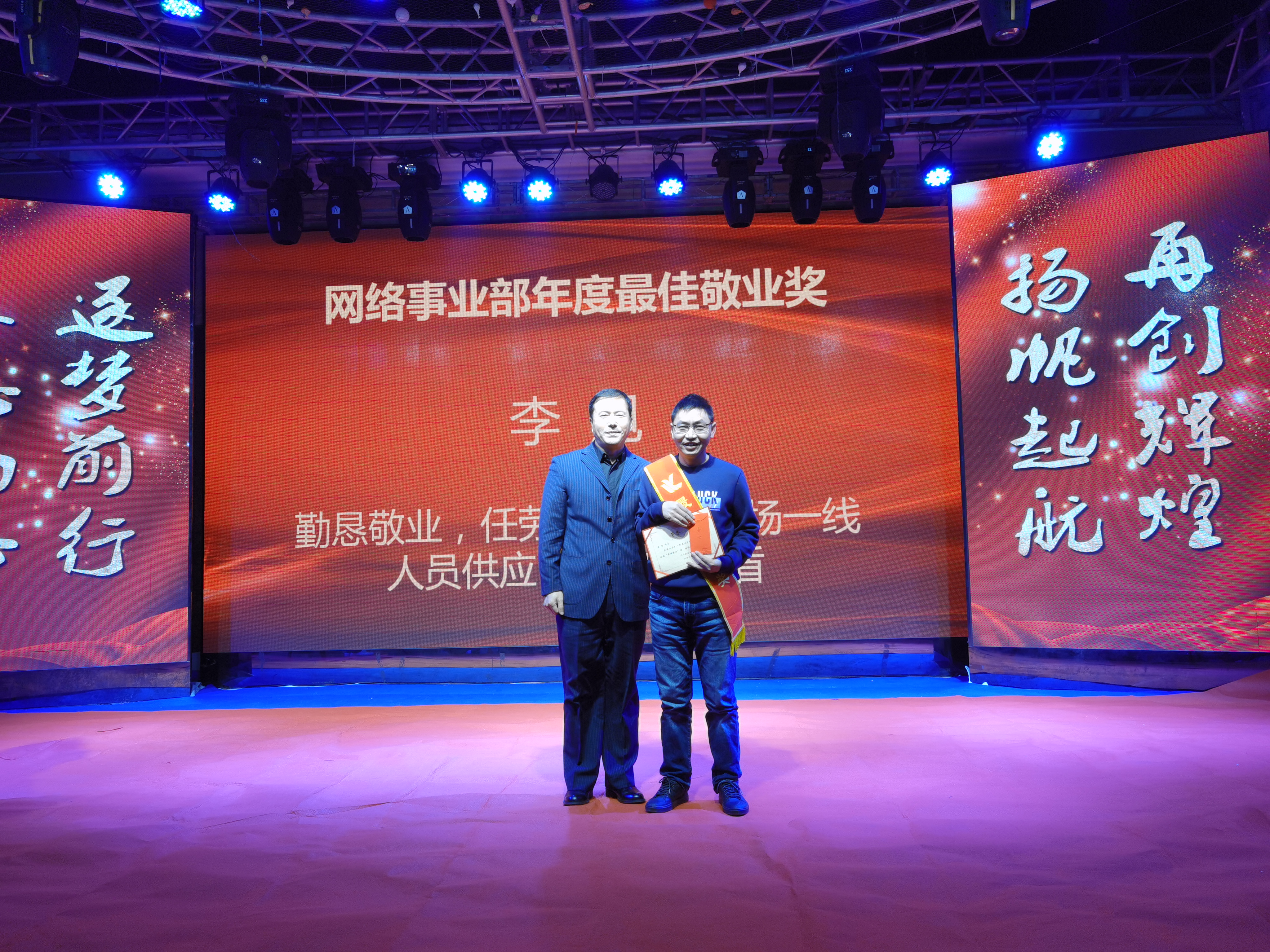 魏香、李鳳芝、劉爽獲得生產(chǎn)部優(yōu)秀員工獎,他們生活在生產(chǎn)一線,在生產(chǎn)車間改造情況下,能夠吃苦耐勞,克服困難,積積主動,盡職盡責的工作作風滲透到車間的每一個日子,每一個角落,他們勤勤懇懇,他們熱情洋溢,他們默默無聞地創(chuàng)造著自己的價值。公司網(wǎng)絡(luò)事業(yè)部總經(jīng)理趙福寬為獲獎?wù)?/span>頒獎。