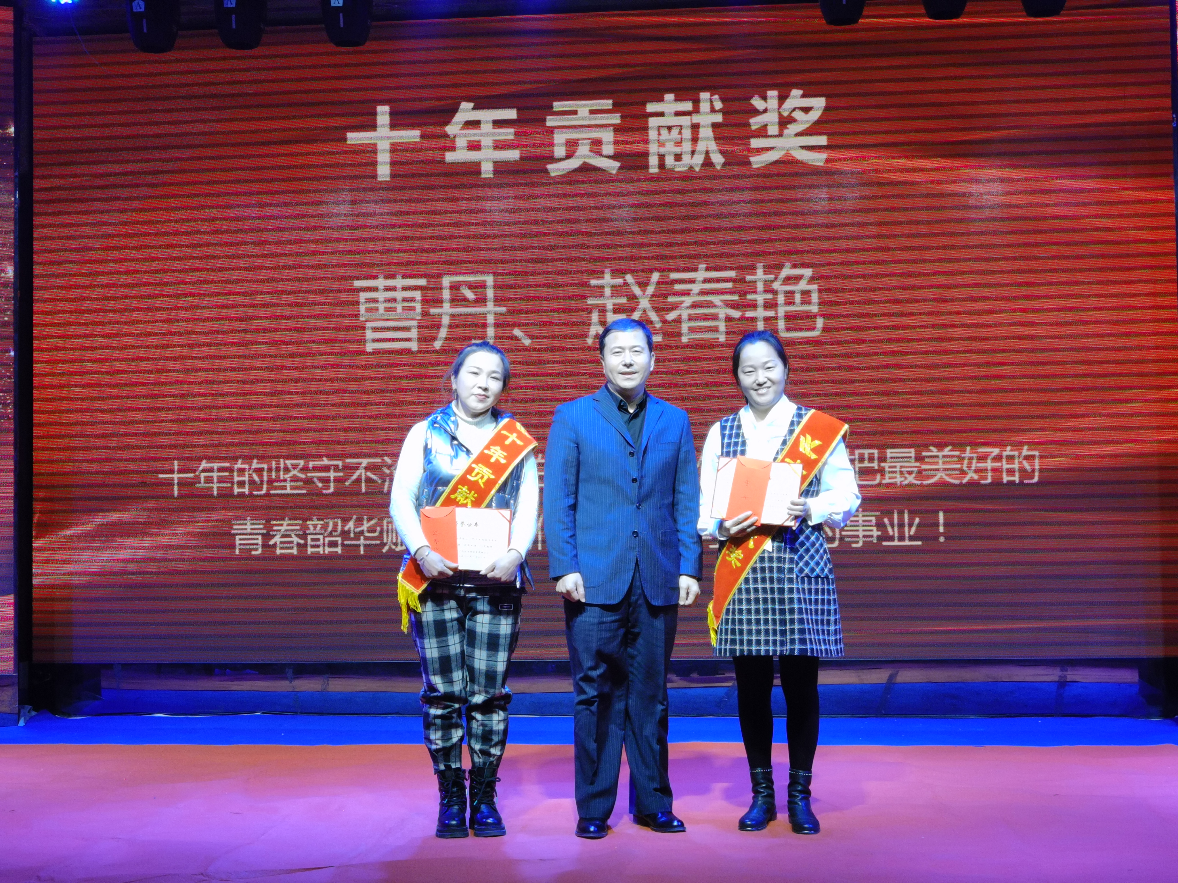 曹丹、趙春燕獲得十年貢獻獎,十年的堅守不渝,十年的默默耕作,他們把最美好的青春韶華賦予了我們?yōu)橹餐瑠^斗的事業(yè),十年如一日他們時刻心系企業(yè)的憂患,與企業(yè)同風雨共命運。公司總裁王鐵良為獲獎?wù)?/span>頒獎。
